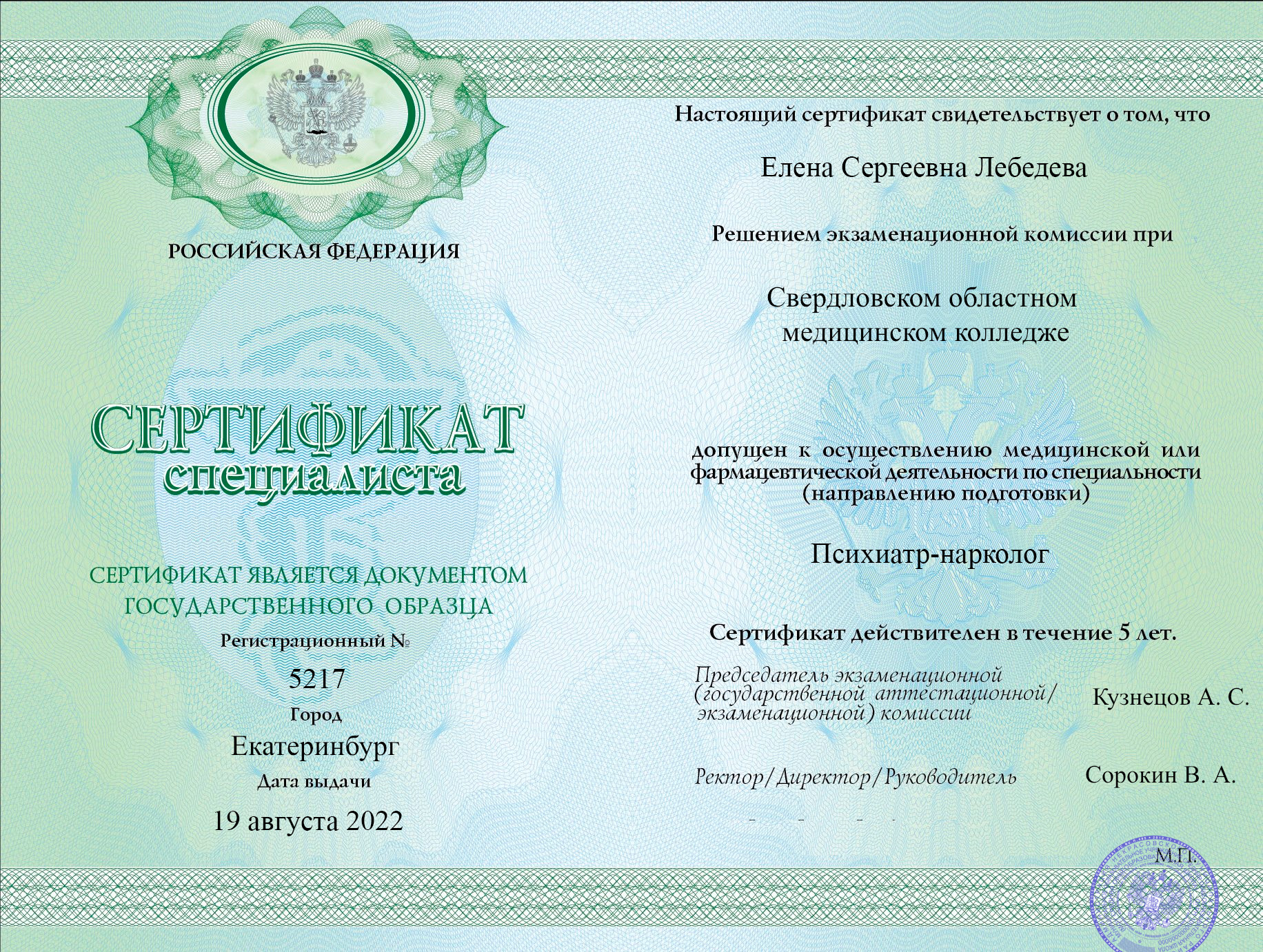 Елена Сергеевна Лебедева врач нарколог клиники доктора Стукаловой в Мытищах